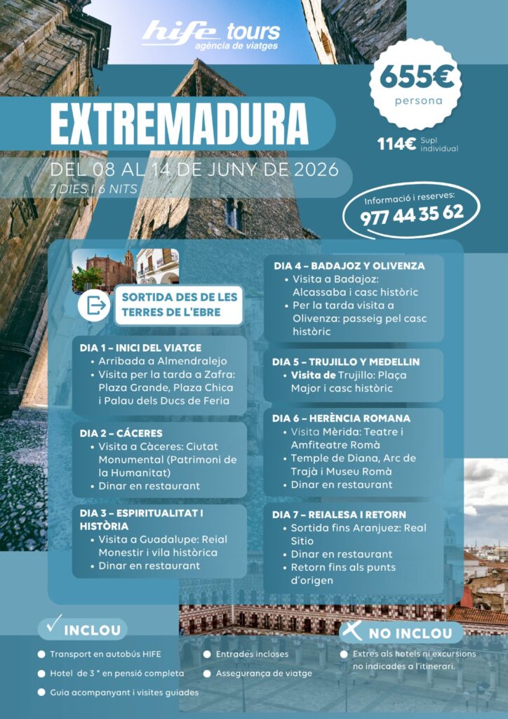 Descubre la esencia de Extremadura en un viaje completo de 7 días y 6 noches, con salida desde las Terres de l’Ebre.